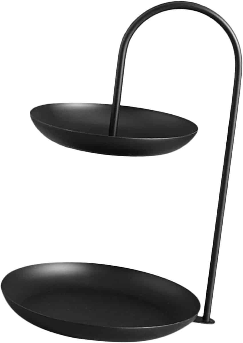 Fruit dienblad van 2 lagen in zwart metaal – Roestbestendig en waterdicht – Opbergplaat met twee verdiepingen – 21 Ounces – Keuken Accessoire – Stijlvol en praktisch – Organisatie en presentatie van fruit