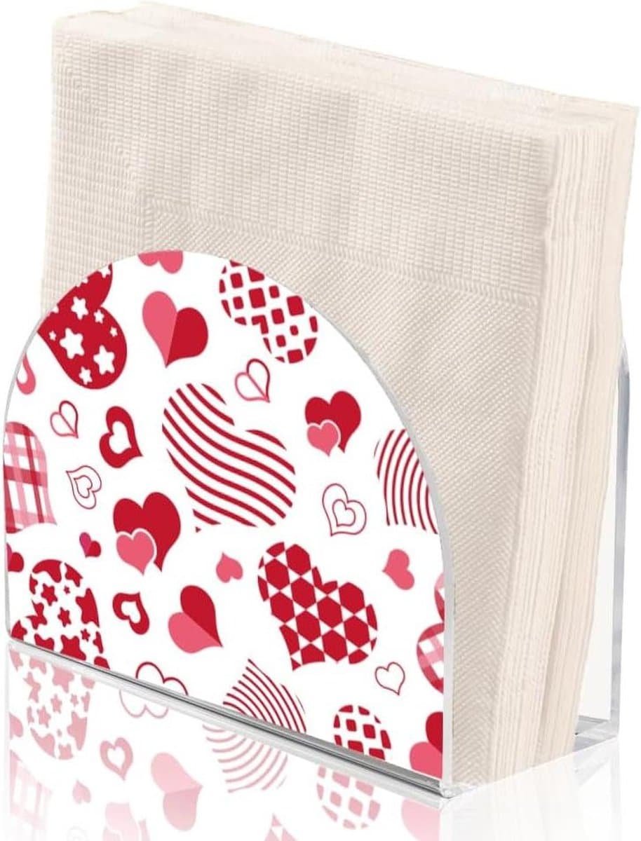 De acryl servethouder is ontworpen met rode hartjes om de servetten op een elegante manier op hun plaats te houden. Met een capaciteit van 50-60 servetten is deze servethouder perfect voor papieren servetten, cocktailservetten, dinervetten en drankservetten. De verdikte basis zorgt voor extra stabiliteit en voorkomt dat de servethouder gemakkelijk wegglijdt.