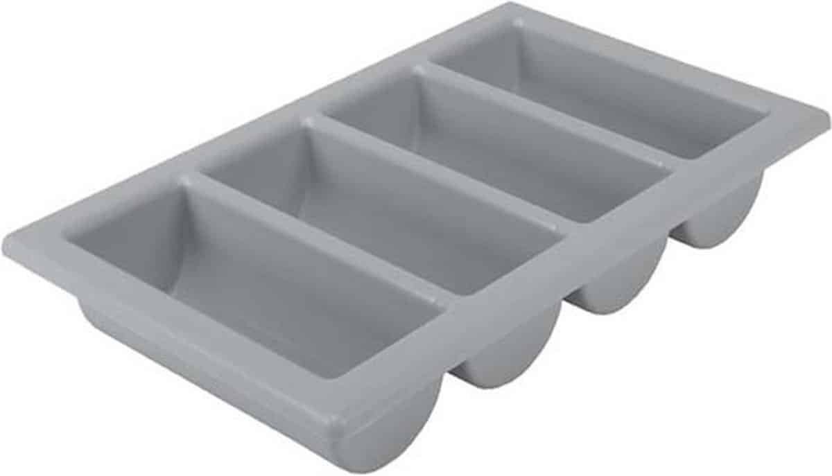 Horeca bestekbak/bestekhouder in het grijs gemaakt van stevig kunststof. Deze bestek bak is voorzien van 4 vakken en heeft een totale afmeting van 53 x 32,5 x 10 cm. Materiaal: kunststof. Merk: Lineoplus Gastro. Bestekhouders/bestekbakken keuken sorteer opberg accessoires. Handig met een event waar veel gasten zijn.
