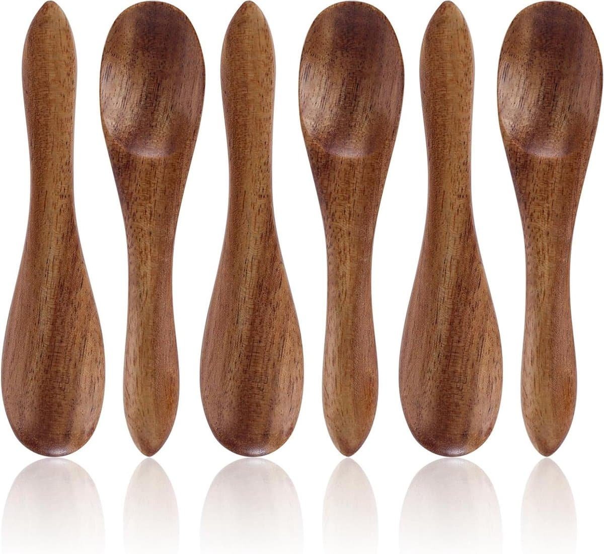 Houten lepels set – 6 stuks – Mini serveerlepels voor honing, koffie, thee – Keuken accessoires – Kook- en serveerset – Houten roerlepels