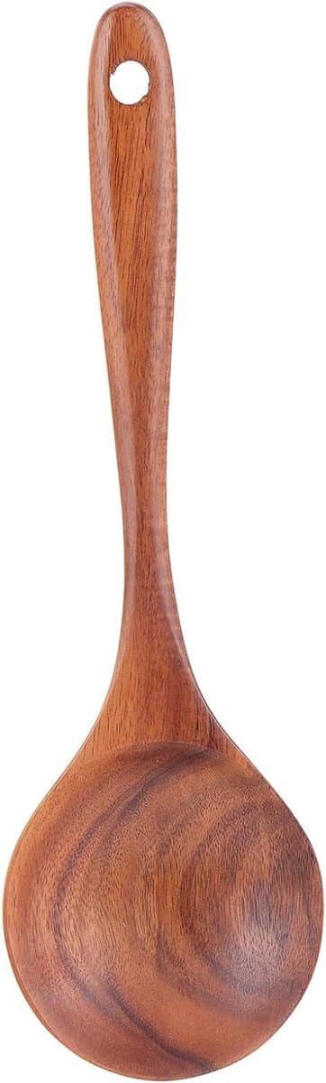 Houten mixing lepel voor salade en koken - Teak houten keukengerei - Natuurlijke lepel voor serveren - Krasvrij - Keuken accessoires