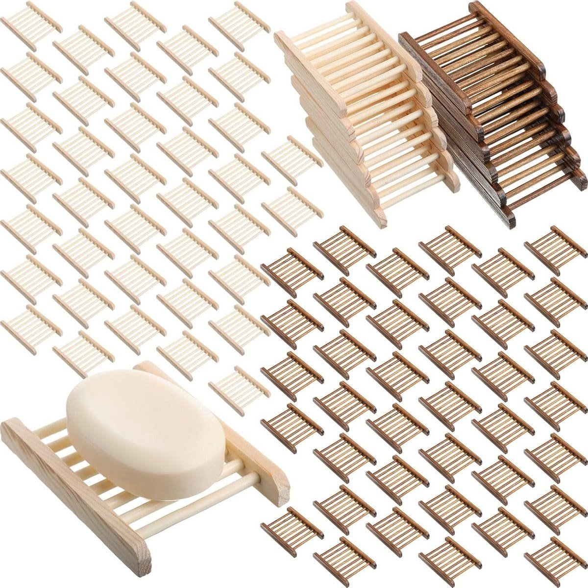 Dit handgemaakte houten zeepbakje is een duurzame en stijlvolle manier om zeep te bewaren in de badkamer, keuken of douche. Met zijn natuurlijke houten design en goede afvoerfunctie houdt het je zeep droog en zorgt het voor een nette uitstraling naast de wastafel of gootsteen. De set bevat 100 stuks: 50 in verkoolde kleur en 50 in originele houtkleur, ideaal als gezinsgebruik of als cadeau. De gestroomlijnde vorm en rustieke uitstraling geven elke ruimte een warme, natuurlijke uitstraling. Omdat het van bamboehout is gemaakt, is het niet alleen duurzaam, maar ook milieuvriendelijk. Let op: door de handmatige productie kan er een kleine maatverschil zijn en kan de kleur iets afwijken door de scherminstelling.