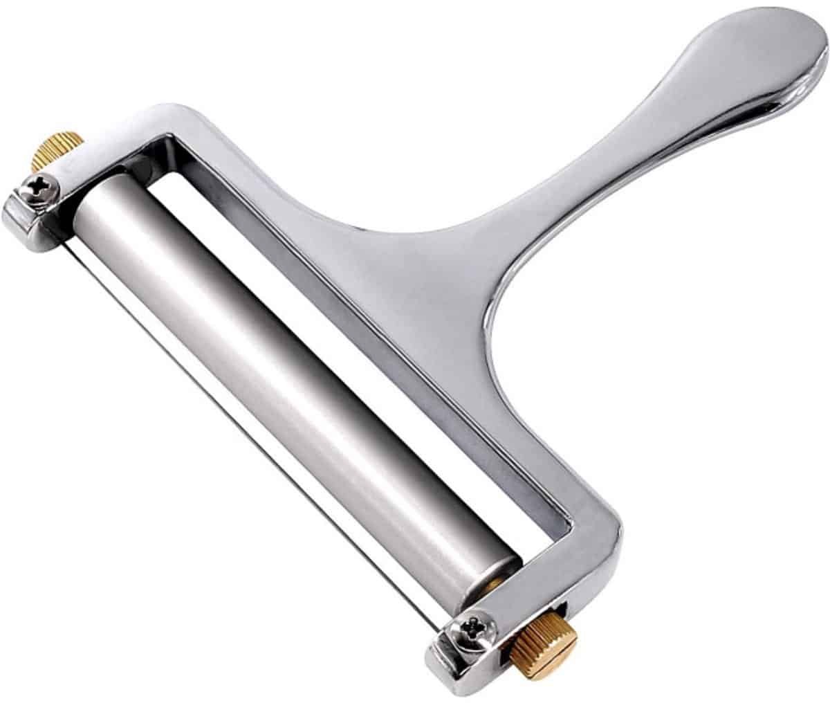 Kaasschaaf – Kaasschaaf voor harde kaas – Zinklegering – RVS – Verstelbare Dikte – Keuken Accessoires – Met rol en snijdraad – Kaasverdeler – Keukengerei – Geschikt voor keukens – 13X12.5X1.25CM – Zilver
