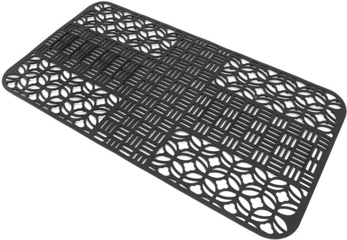 Met de Siliconen Gootsteenmat Antislip Hittebestendig in groot formaat van 66×35 cm maak je een slimme keuze voor je keuken. Deze gootsteenmat is vervaardigd uit food grade siliconenmateriaal, waardoor je je keukengerei kunt beschermen en tegelijkertijd je gootsteen schoon kunt houden. Het zachte materiaal biedt niet alleen demping, maar heeft ook een antislipwerking, wat zorgt voor extra veiligheid tijdens het koken. Bovendien is de mat hittebestendig, zodat je er gerust hete potten en pannen op kunt plaatsen. Het snijbare ontwerp maakt het mogelijk om de mat aan te passen voor een perfecte pasvorm in jouw keuken. Na gebruik is de mat eenvoudig te reinigen, zelfs in de vaatwasser. Deze veelzijdige gootsteenmat is niet alleen geschikt voor gebruik in de gootsteen, maar kan ook worden ingezet op keukenbladen, in koelkasten, lades en meer. Met deze mat houd je je keuken hygiënisch en georganiseerd. Maak je keuken compleet met deze praktische en stijlvolle accessoire in een elegante zwarte kleur.