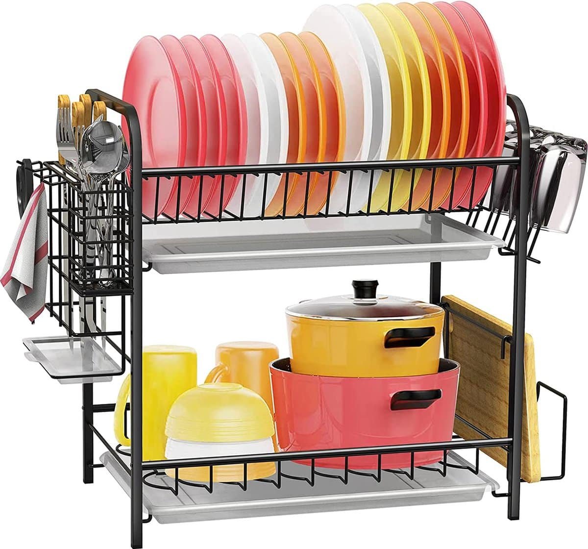 Grote capaciteit en ruimtebesparend: 2 lagen droogrekken kunnen op het aanrecht worden geplaatst om meer dingen te plaatsen