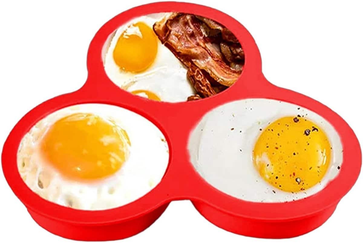 Keuken Siliconen Eierbakvorm – 3 Caviteiten Airfryer Moule – Multifunctioneel voor Oven, Microgolf, Airfryer – Etenveilig Silicone – Geschikt voor Eieren, Muffins, Kleine Taarten – Rood – Praktisch Bakken Accessoire