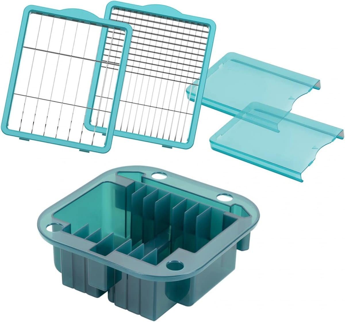 Keuken Snijset – Groentesnijder Accessoires – Snel Groenten Snijden – Praktisch Opberginzetstuk – 5 Delig – Turkoois