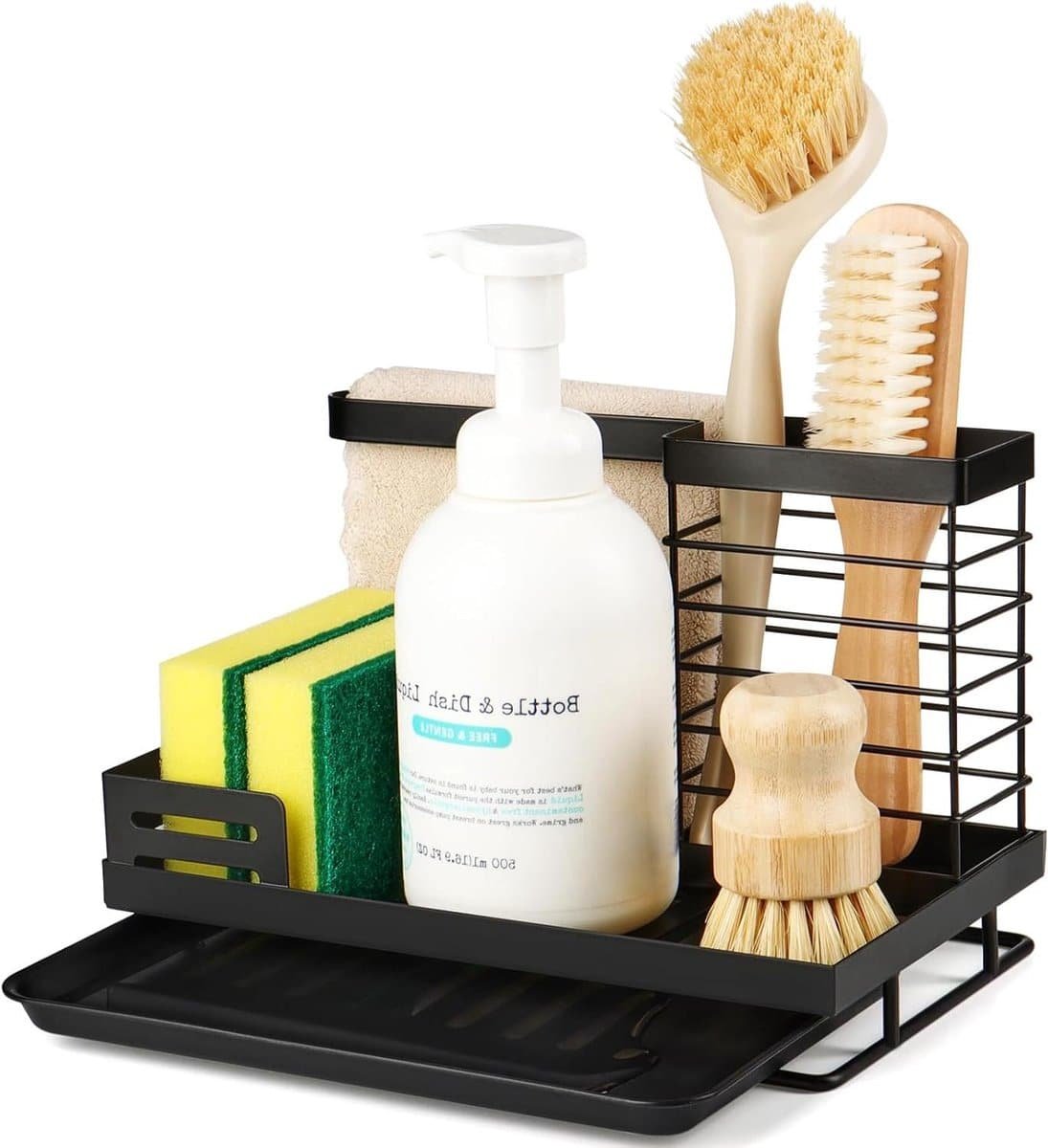 Keuken spoelbakorganizer met afvoerpan en sponshouder – Zwart, gootsteenplank, afwasorganizer, wastafel accessoire.