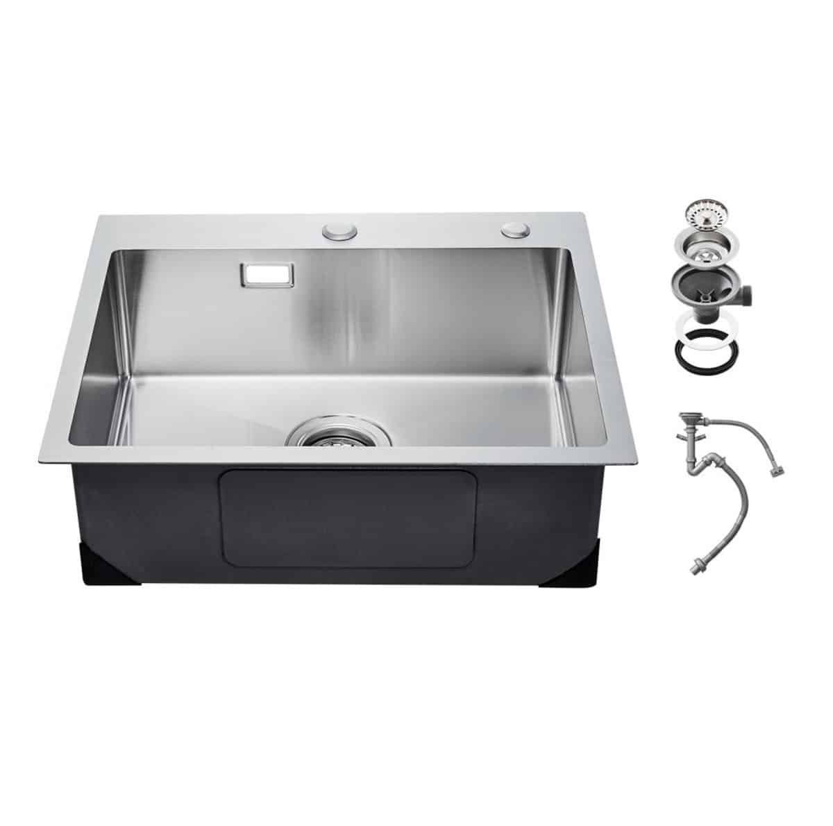 Keukenspoelbak – Inbouw/Opbouw – 55 x 45 x 19 cm – RVS – Enkele Kom – Met Accessoires – Geschikt voor Keuken, Bar en Camper