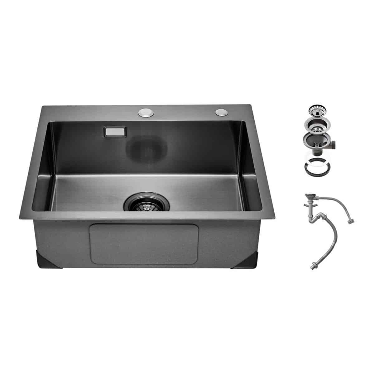 Keukenspoelbak – Inbouwspoelbak – Afmeting 68 x 45 x 19 cm – RVS – Enkele Kom – Met Accessoires – Voor Keuken, Bar en Camper – Zwart