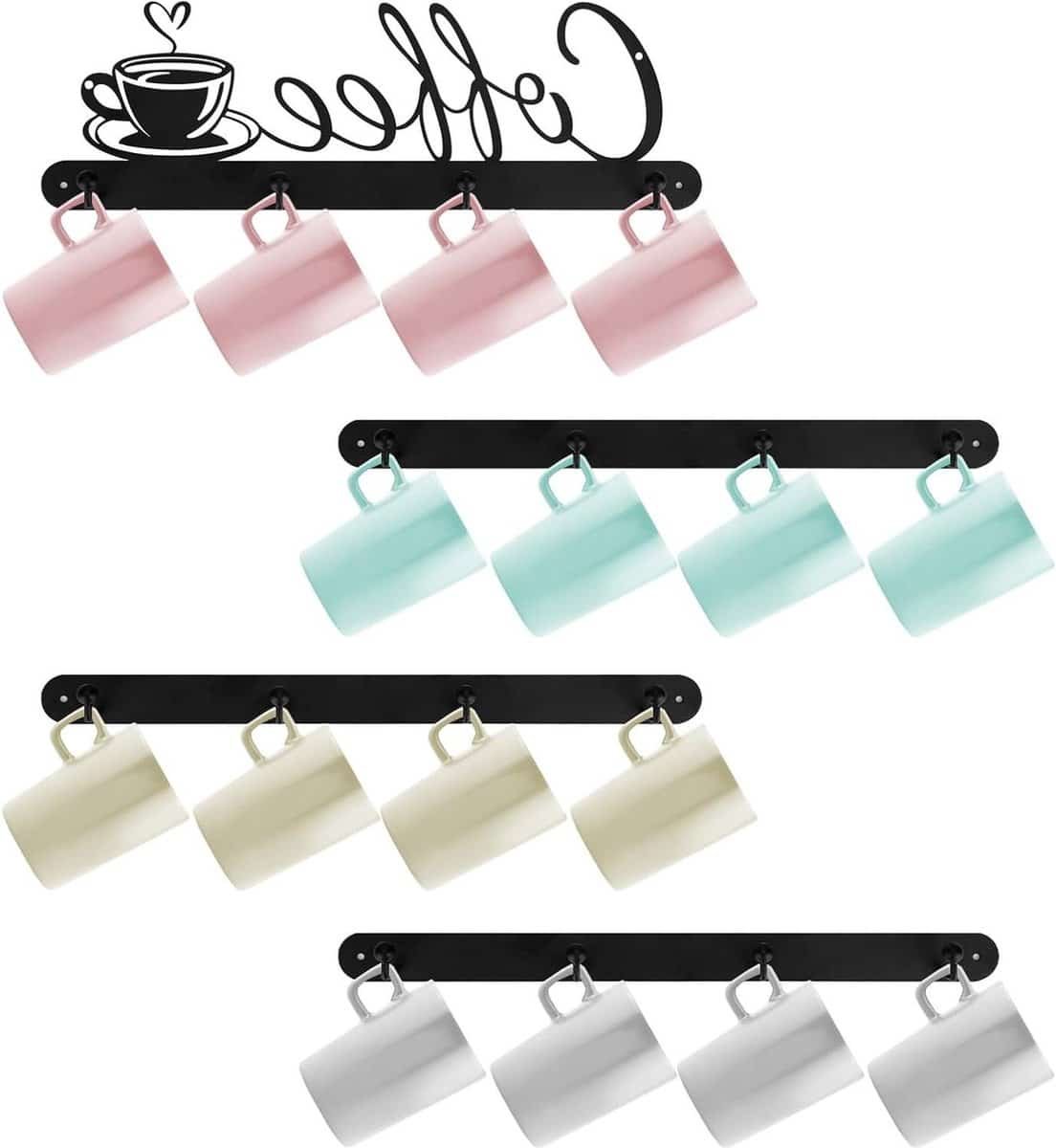 Koffiebekerhouder voor aan de muur gemonteerd metaal – koffiemok hanger met 16 haken – koffietekens decoratie – keuken en koffiebar accessoires
