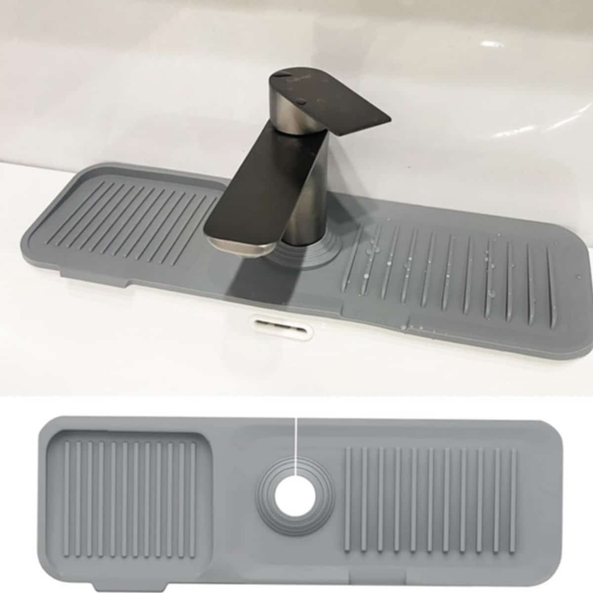 Kraanmat met spatbescherming – Kraanmat – Keuken spatbescherming accessoire – Voedselveilige siliconen – Lichtgrijs