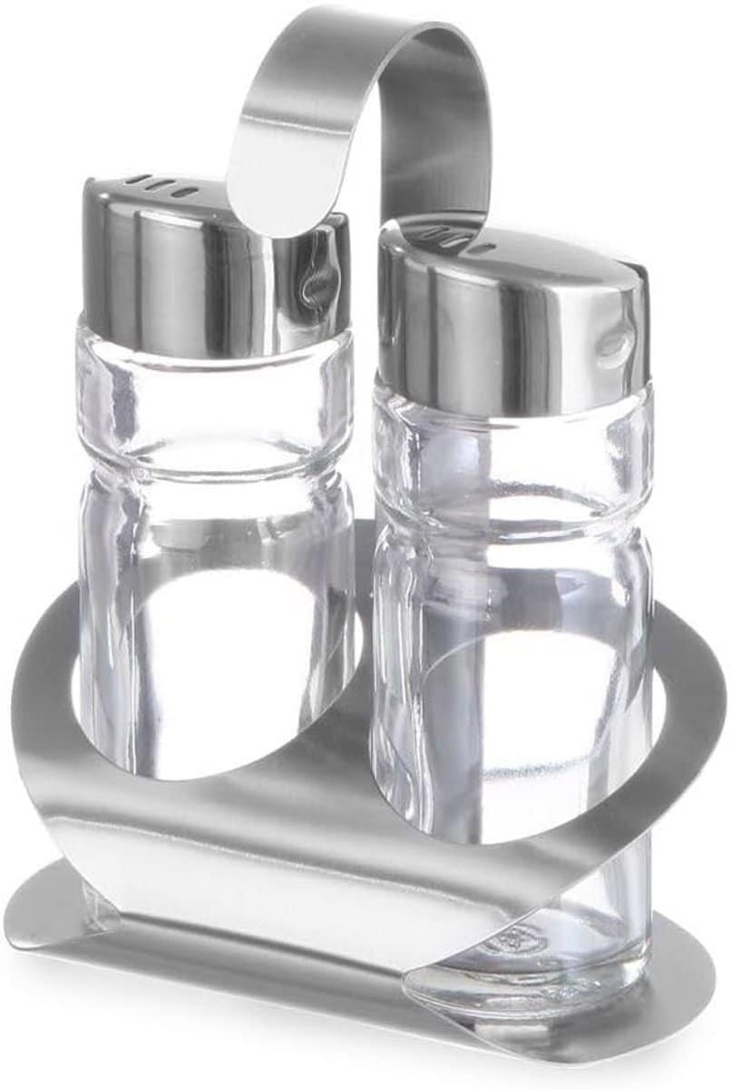 Complete menage set voor het serveren van olie en azijn, ideaal voor zowel professioneel gebruik in de horeca als thuis in de keuken. Deze tweedelige set bestaat uit een olie- en azijnfles met een inhoud van 0,15L per stuk. De flessen zijn uitgevoerd in stijlvol gesatineerd glas met hoogwaardige RVS accenten, wat zorgt voor een luxe en moderne uitstraling op tafel. Het ontwerp is gericht op gebruiksgemak en functionaliteit. Afmetingen van de houder zijn ongeveer 85x55x(H)115mm. Perfect voor het toevoegen van een verfijnde touch aan uw culinaire presentaties.