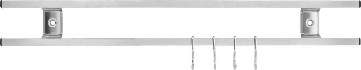 4 ophanghaken De messenstrip heeft 4 ophanghaken en is daarmee geschikt voor meerdere messen. Aan de messenstrip met 4 ophanghaken hang je messen in verschillende formaten, zodat je voor ieder ingrediënt het juiste mes bij de hand hebt.