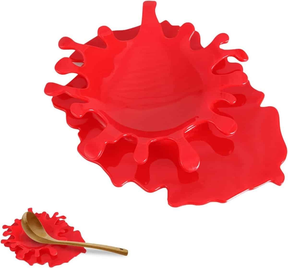 Meer informatie over de voordelen Deze kooklepelhouder is gemaakt van hoogwaardig en milieuvriendelijk TPE-materiaal, waardoor het niet alleen mooi is, maar ook duurzaam in gebruik. Je kunt de lepelhouder gebruiken om je kookgerei, borstels en andere keukenbenodigdheden op te bergen, waardoor je werkoppervlakken, tafels en aanrecht schoon blijven. Daarnaast heeft de lepelhouder een creatief ontwerp dat lijkt op gemorste ketchup, met een heldere en felrode kleur die je keukeninrichting zal opvrolijken. De stabiele constructie zorgt ervoor dat de lepelhouder stevig op een vlak oppervlak staat, waardoor gemorste vloeistoffen en rommel tot het verleden behoren.