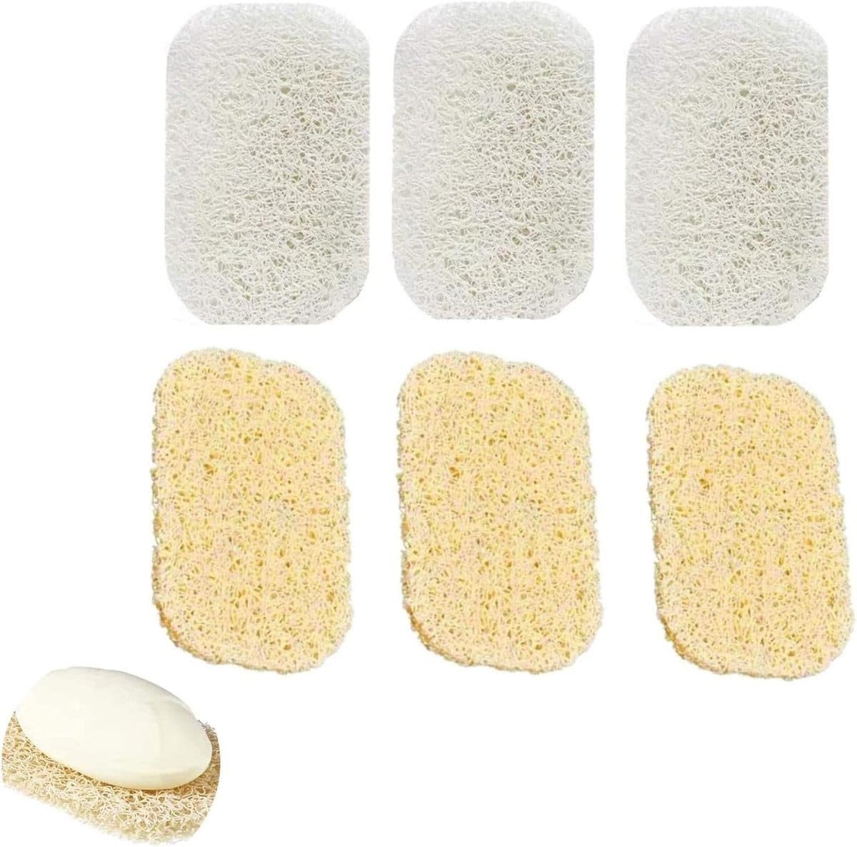 Luffa spons zeepkussen, zeepbakje, beschermpads voor zeepbakje, accessoires voor douche en keuken, 6 stuks.