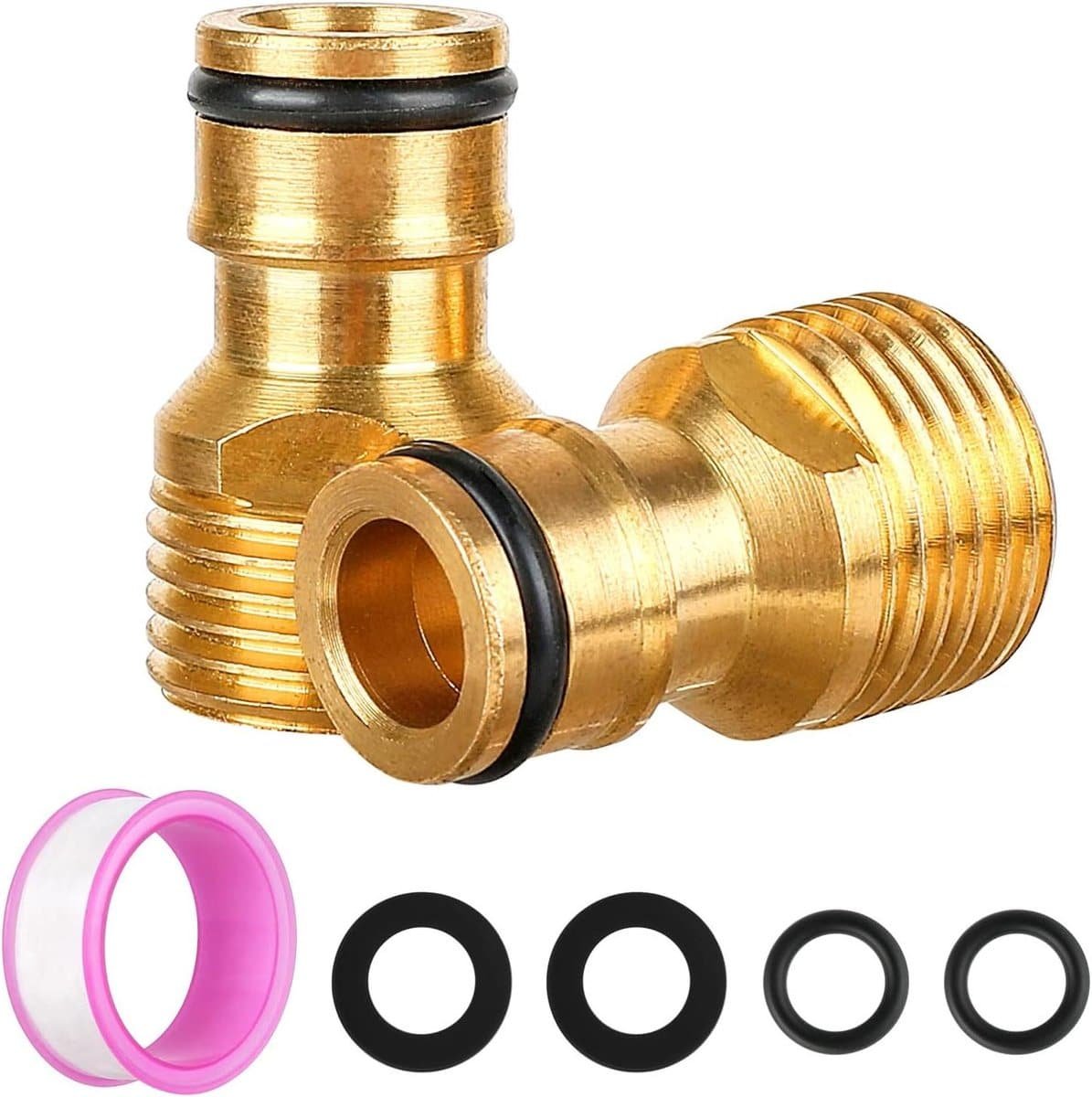 Slangaansluiting kraanset: De set bevat 2 slangaansluitingen, 2 sluitringen, 2 O-ringen en 1 waterdichte band voor dagelijks gebruik.