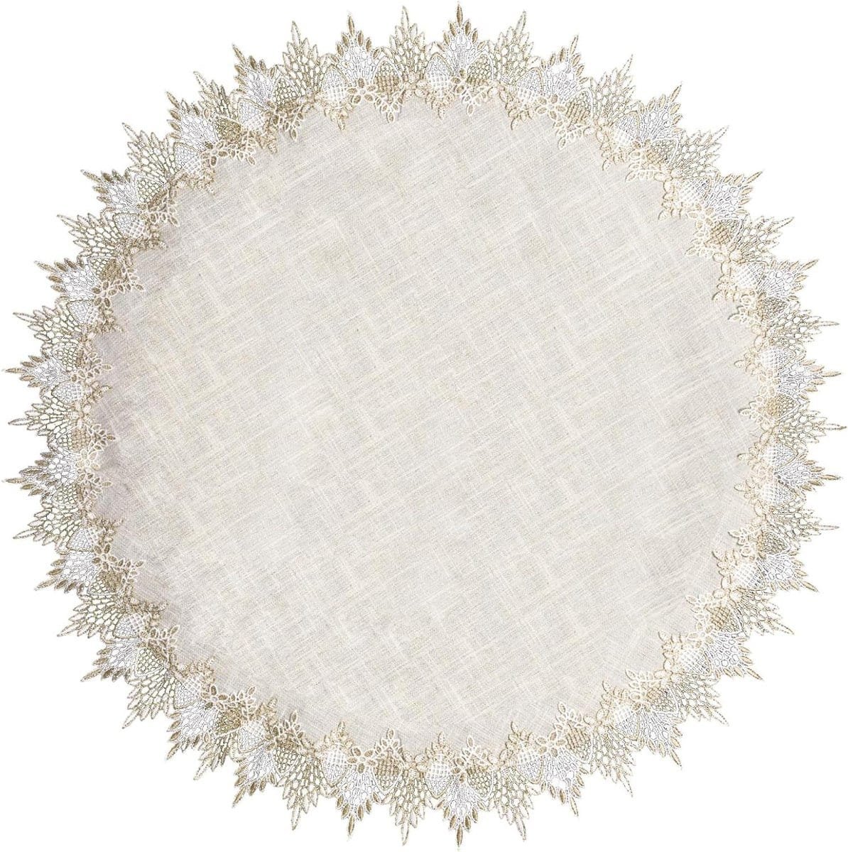 MK Stoer – Tafelkleed – Keuken – Stofdichte bescherming – Kanten rand – Rond – Beige – Eettafel accessoire – Linnen – Geschikt voor ronde tafels – Salontafel decoratie met kanten afwerking