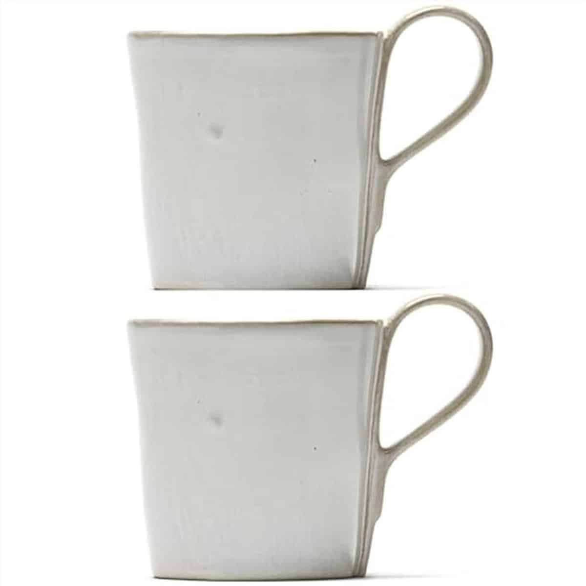 Set van 2 off-white steengoed koffiekoppen met handvat, ideaal voor hete dranken zoals espresso en latte. Deze herbruikbare mokken zijn perfect voor thuisgebruik en voegen een elegante touch toe aan je keukengerei. Een must-have voor koffie liefhebbers!