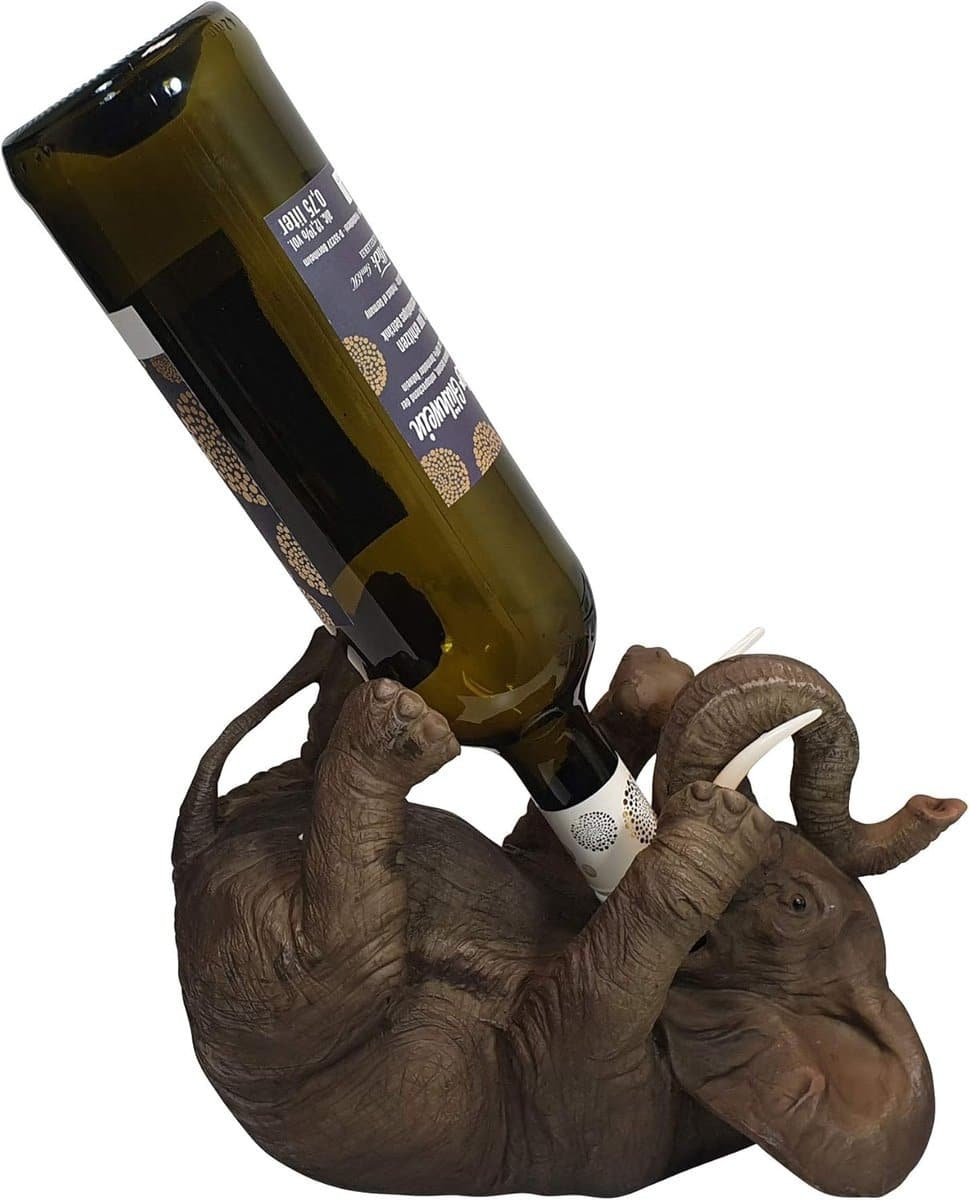 Olifant Flessenhouder – Wijn Accessoire – Keuken Decoratie – Uniek Olifant Design – 18x17x24 cm – Bruin
