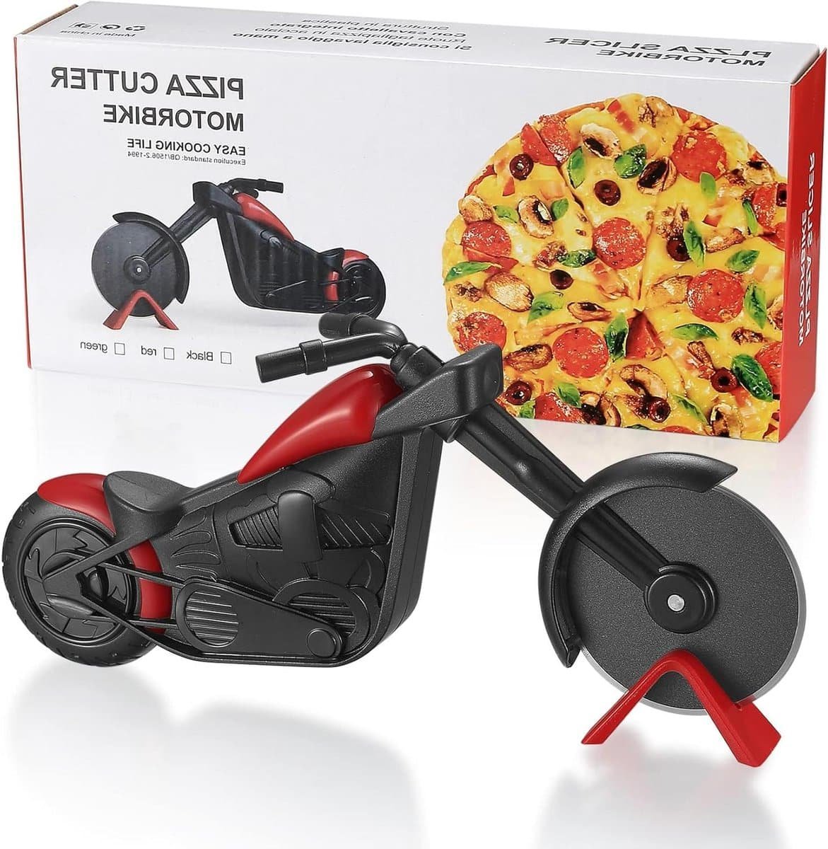 De Motorbike Pizza Snijder is dé must-have voor alle pizzaliefhebbers en motorfietsfans. Dit innovatieve pizzames, gemaakt van roestvrij staal met een non-stick coating, maakt het snijden van pizza moeiteloos en efficiënt dankzij het unieke motorontwerp.