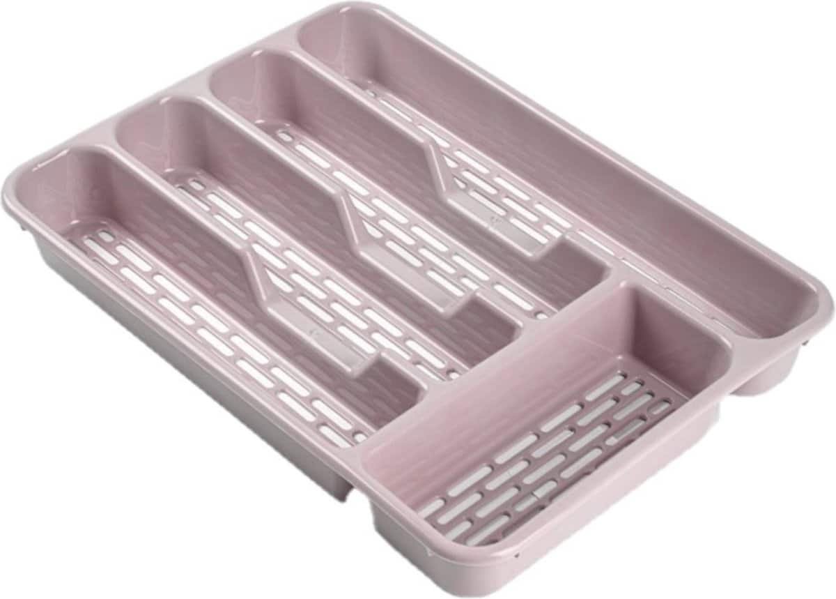 Plasticforte Bestekbak – 2x stuks – bestekhouder – 5 vaks – roze – 33 x 24 x 4 cm – Kunststof – Keuken opberg accessoires