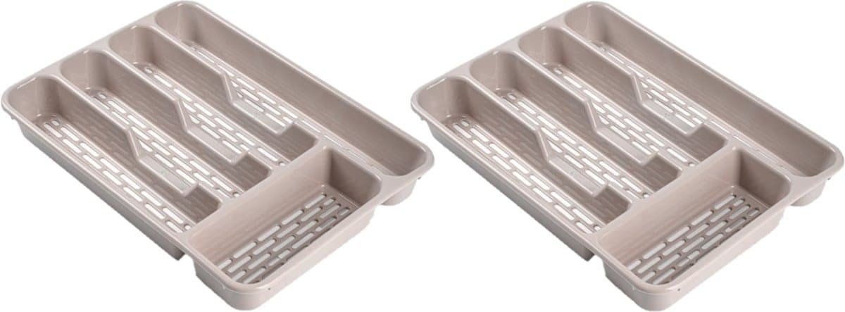Plasticforte Bestekbak – bestekhouder – 5 vaks – taupe – 33 x 24 x 4 cm – Kunststof – Keuken opberg accessoires
