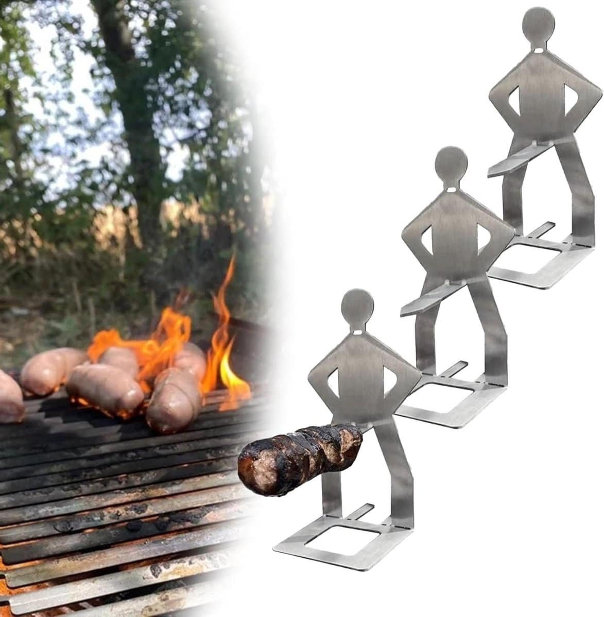 Premium BBQ Accessoires voor Mannen: Camping Grill & BBQ Stand Set met RVS Barbecue Worst Rack, Outdoor Keuken Accessoires, Grappig Hot Dog Gereedschap (met borstel)