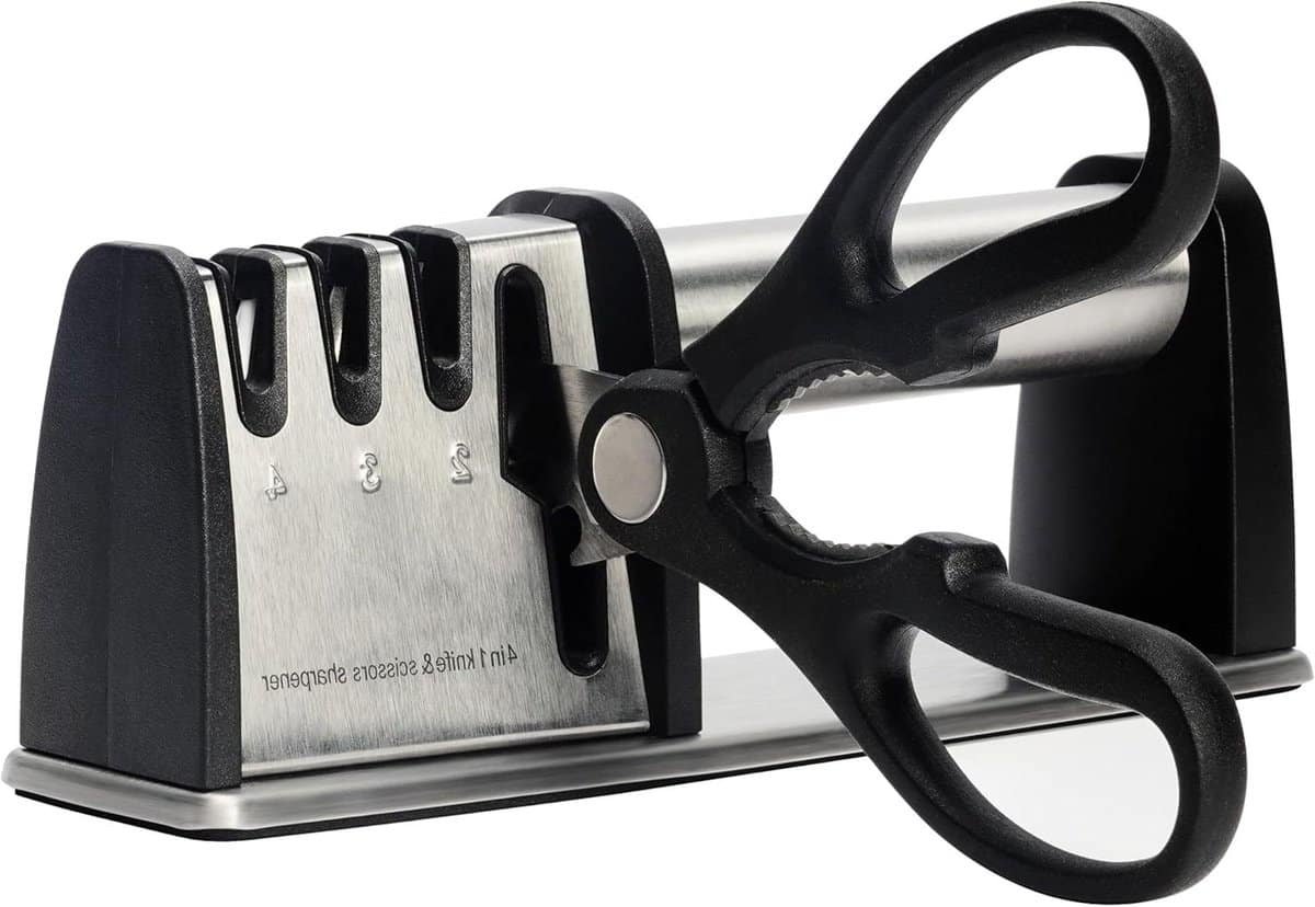 Professionele 4-in-1 Keuken Messen Slijper – Manuele Accessoire met 4 Stages – Diamant, Wolfraam, Keramiek & Carbide Slijpers – Voor Rechte Messen en Scharen – Repareer en Polijst.