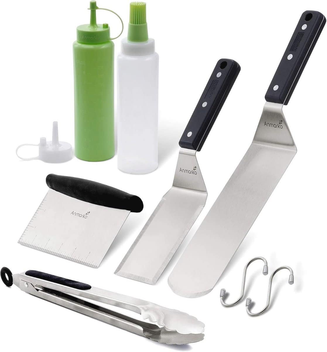 Ontdek onze professionele grillspatel set van roestvrij staal, ideaal voor elke kookliefhebber. Deze 6-delige set bevat een teppanyaki-spatel, hamburgerspatel en platte grillspatel, perfect voor gebruik in restaurants, op de barbecue, tijdens kampeertrips en in de keuken. Met deze commerciële kwaliteit grillaccessoires bereid je moeiteloos een scala aan gerechten, van hamburgers tot omeletten. De veelzijdige schraper maakt het eenvoudig om deeg te snijden en ingrediënten te verdelen. Upgrade je keuken met deze heavy duty spatels en ervaar het verschil in gebruiksgemak en kwaliteit. Veiligheid eerst: let op dat metalen onderdelen heet kunnen worden en sommige gereedschappen scherpe randen hebben.