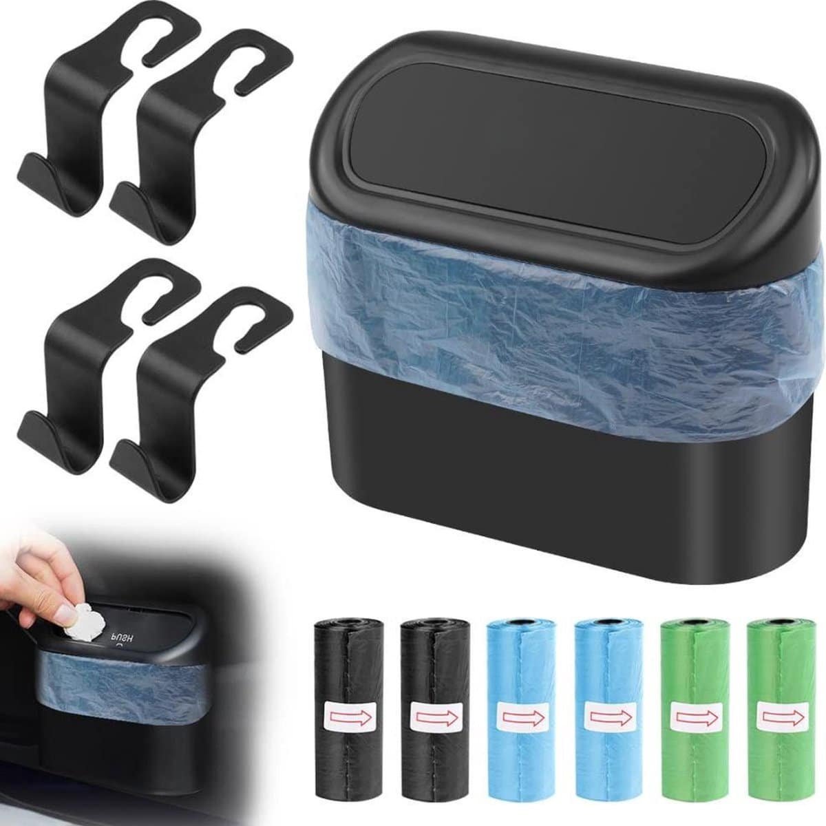Prullenbak met Deksel – Auto met 96 Rollen Vuilniszakken – Kleine Auto-afvalbak – Waterdichte Draagbare – Voorkant Hangend – Auto Prullenbak voor Keuken – Zwart auto accessoires