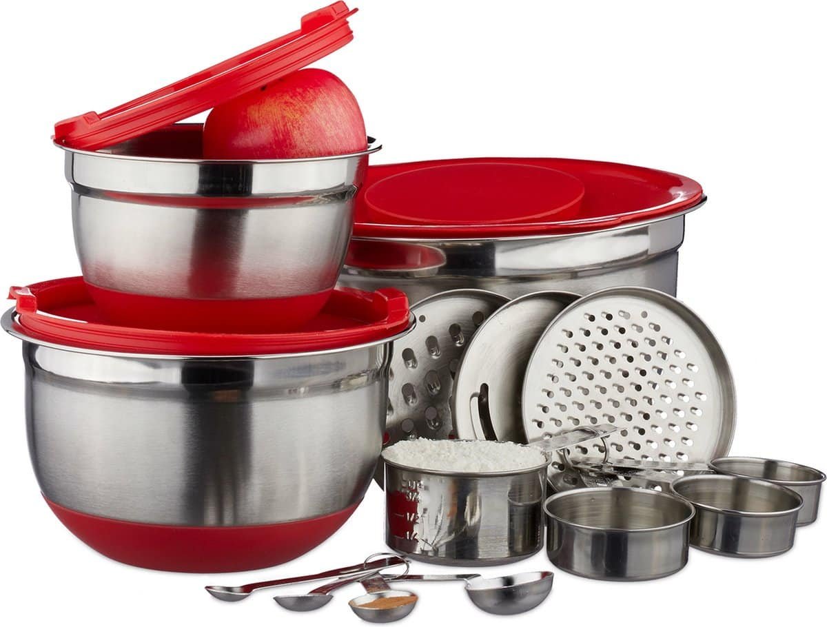 Relaxdays Keukengerei set – mengkom met deksel – cups – keuken accessoires set – 17-delig