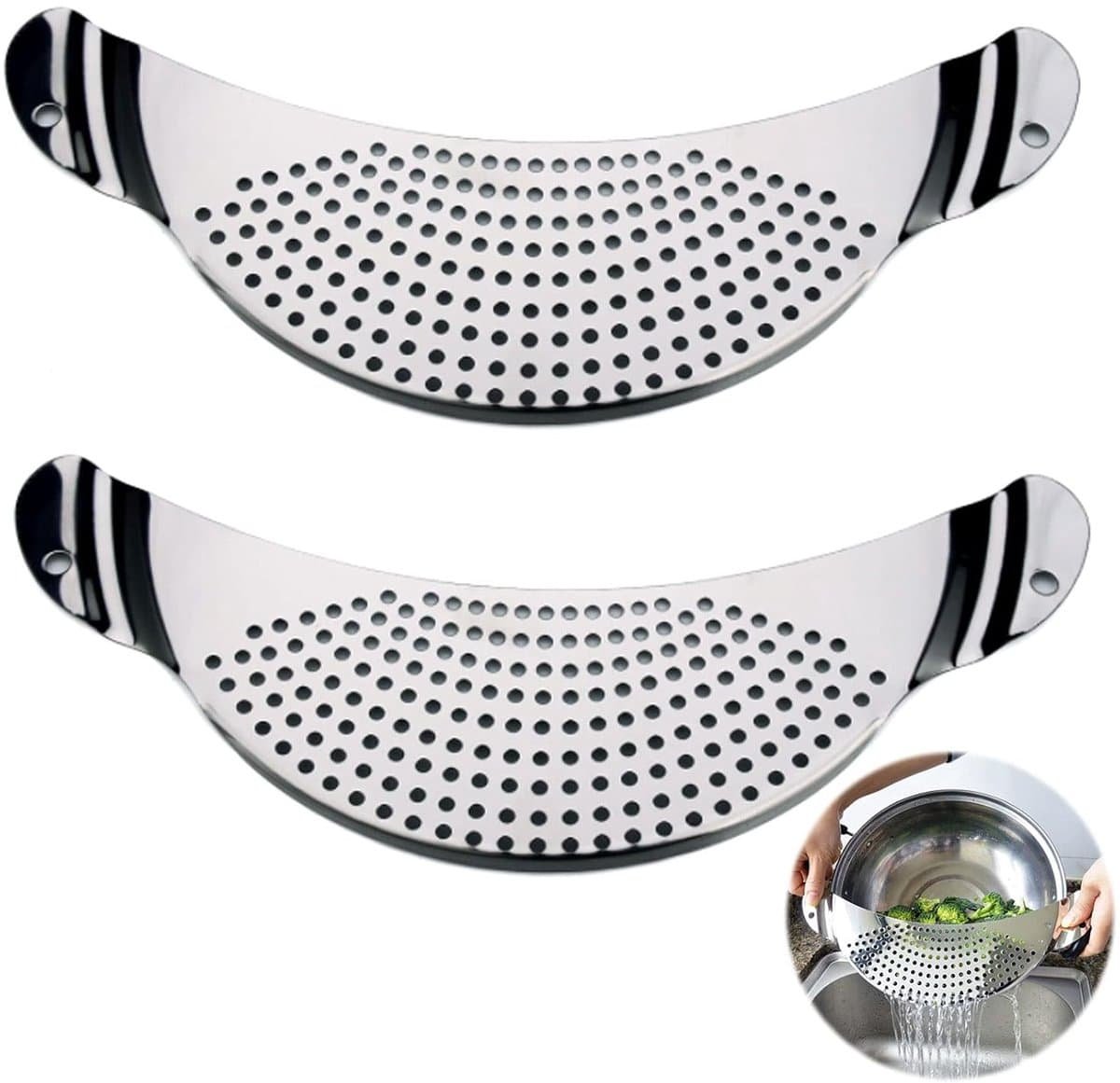 Ontdek de perfecte oplossing voor al je afgiethaken met onze roestvrij stalen voedselzeef. Dit onmisbare keukenaccessoire is speciaal ontworpen om je te helpen bij het afgieten van groenten, pasta en rijst, zonder dat je een rommel maakt. Met een stevig handvat en een slimme vormgeving zijn deze zeven uiterst gebruiksvriendelijk.