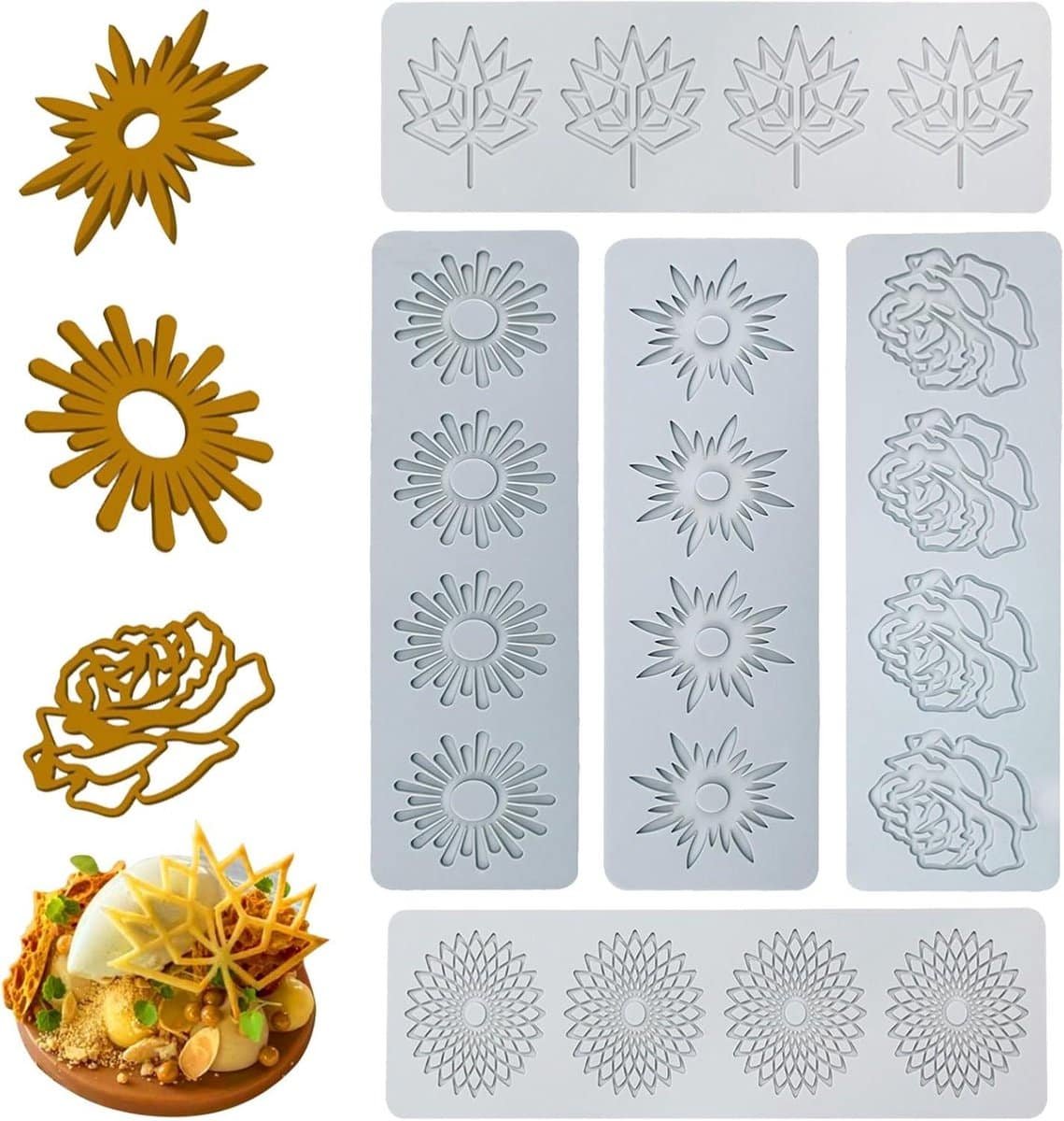 Deze set van 5 verschillende blad- en koraaltakontwerpen is perfect om je eten speciaal, mooi en aantrekkelijk te maken. Geschikt voor verschillende soorten creatieve producties.