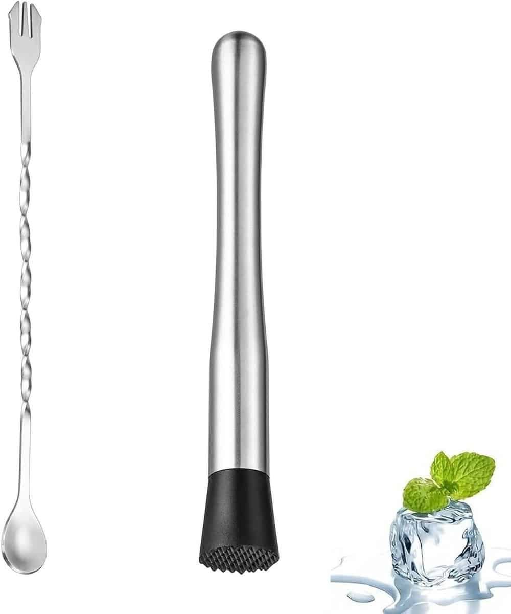 Ronte – Cocktaillepel 25 cm Roestvrij Staal Stamper IJsbreker Mojito Accessoires voor Keuken en Bar