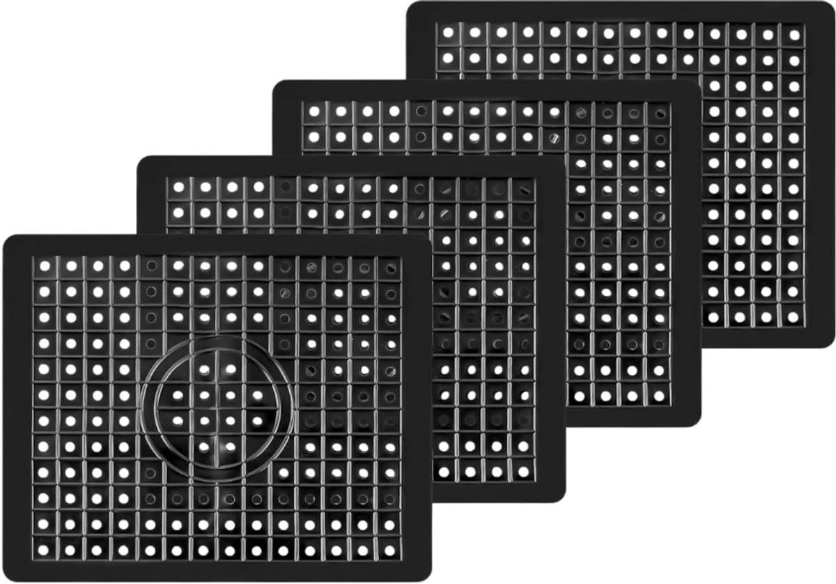 Rubber Gootsteenmat Set van 4 - Spoelbakmat - Afdruipmat - Gootsteen Beschermer - Anti-Kras Bescherming voor Afwasbak - Keuken Accessoires - Gootsteenmat Rechthoekige - Gootsteenmat Zwart