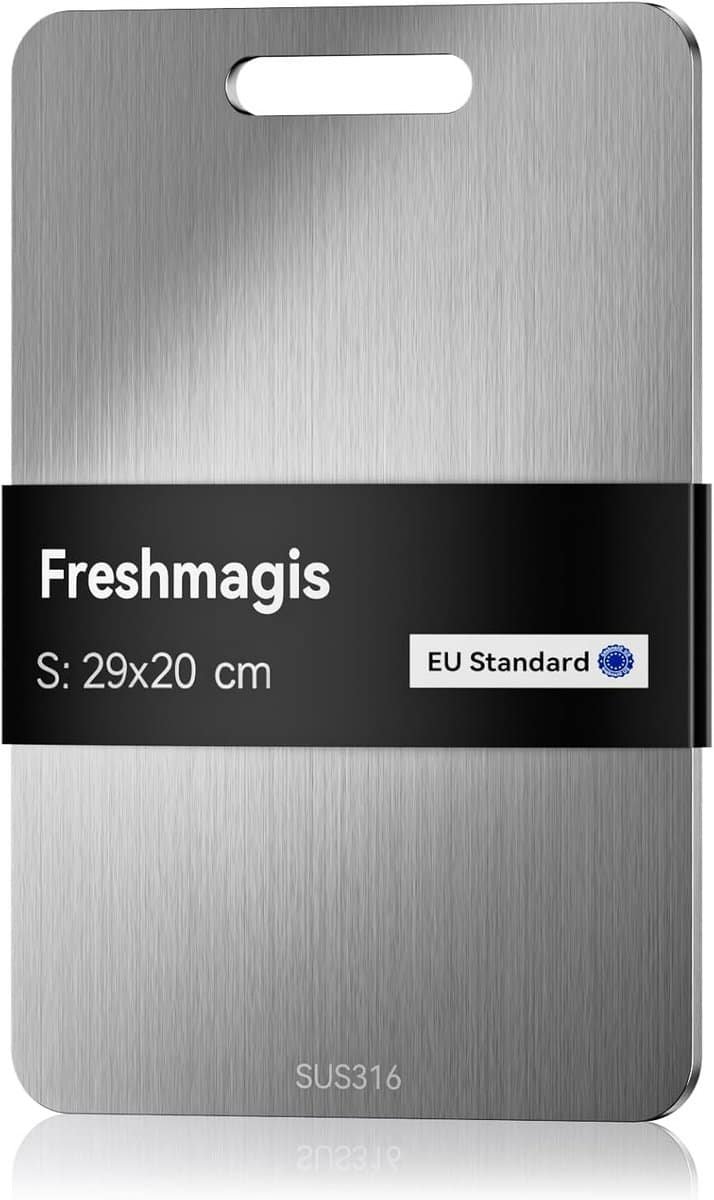 Duurzame snijplank gemaakt van roestvrij staal, ideaal voor elke keukenactiviteit. Deze robuuste keukenplank van 29 bij 20 cm is hygiënisch en gemakkelijk schoon te maken. Een essentieel en lang meegaand keukenhulpmiddel.