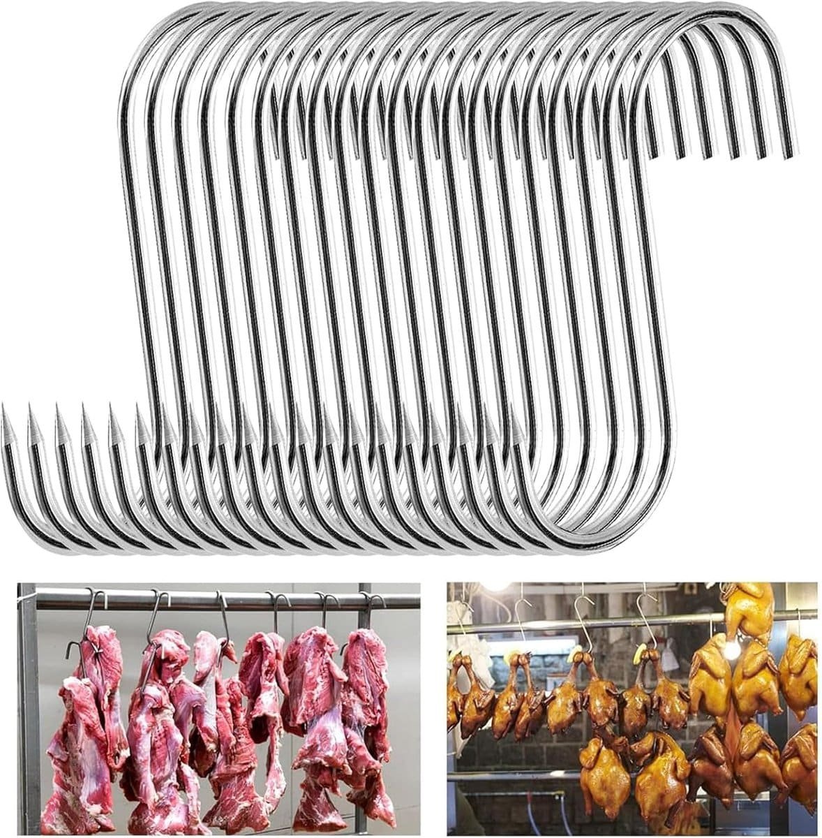 S-haakjes – roestvrijstalen vlees haken – 20 stuks (3 cm x 15 cm) – hoogwaardige rook haken – slager haak – keuken haak – vlees haak met punt – vlees haak voor keuken – barbecue – bakken – vlees accessoires