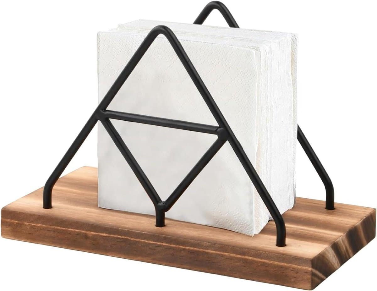 Stijlvolle Keuken Servethouder Wil jij jouw keuken of eettafel een vleugje elegantie geven? Dan is de moderne servethouder precies wat je nodig hebt! Deze servethouder combineert functionaliteit met stijl, waardoor het een onmisbaar accessoire is voor keukens, restaurants, bars en zelfs kantoren. Materiaal: De servethouder is gemaakt van hout en metaal, met een gepolijst oppervlak dat glad aanvoelt en je handen niet zal beschadigen. Het duurzame ontwerp zorgt ervoor dat het lang meegaat.