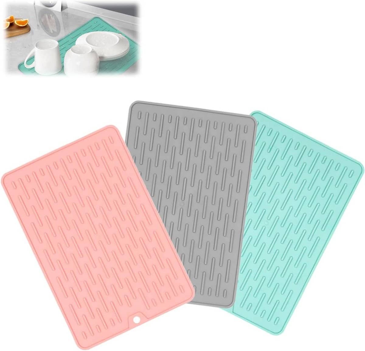 Servies Afdruipmat Set van 3 – Blauw, Grijs, Roze – 20 x 30 cm – Keuken Accessoires