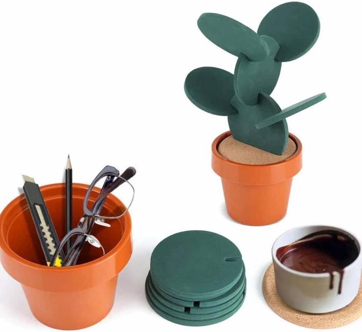 Set onderzetters in cactusdesign bloempot – 6 stuks – decoratieve keuken accessoires