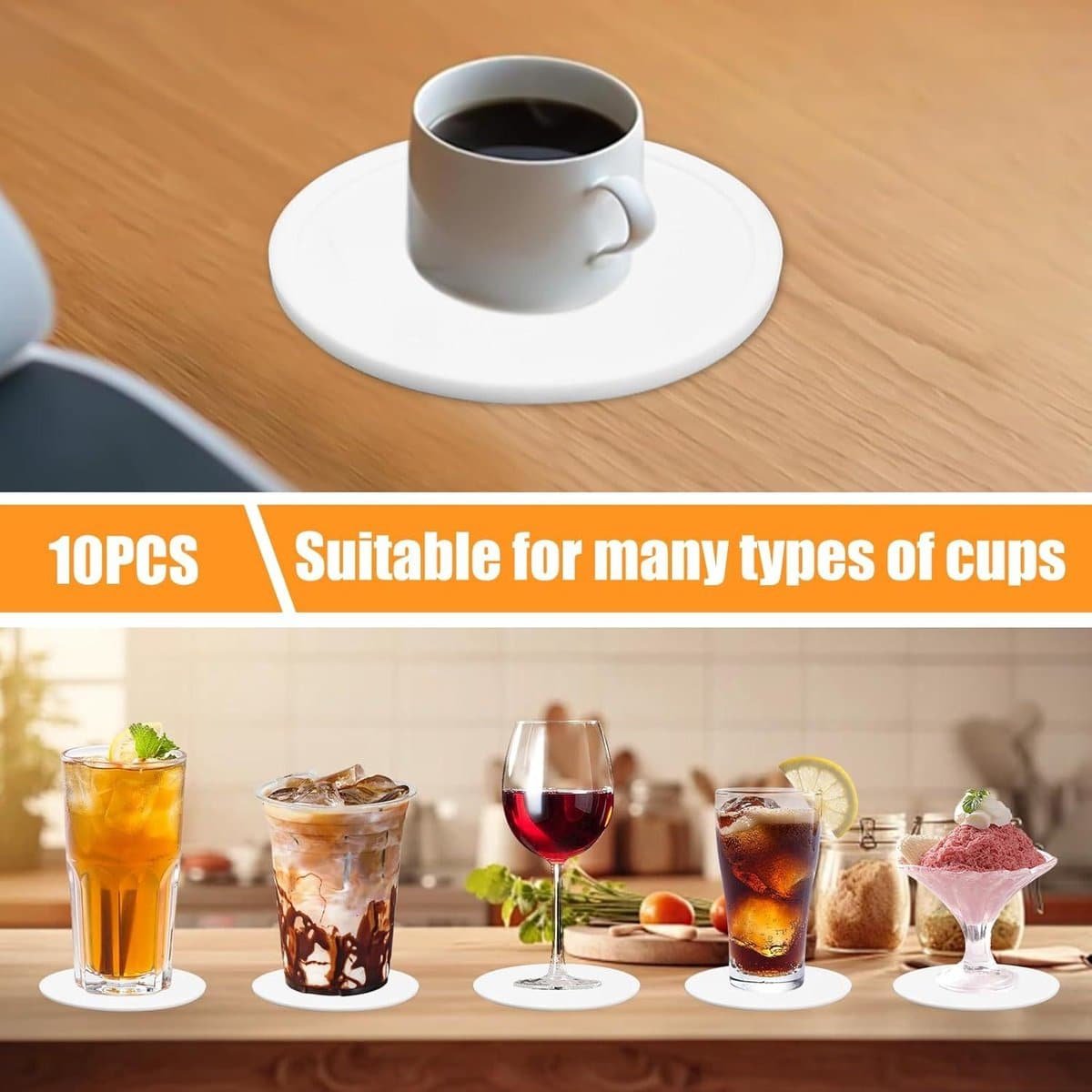 Onderzetters van Silicone voor Glazen Praktische Silicone Onderzetters voor Glazen Voordelen van het Product: Beschermt oppervlak tegen olie, water, warmteschade en krassen