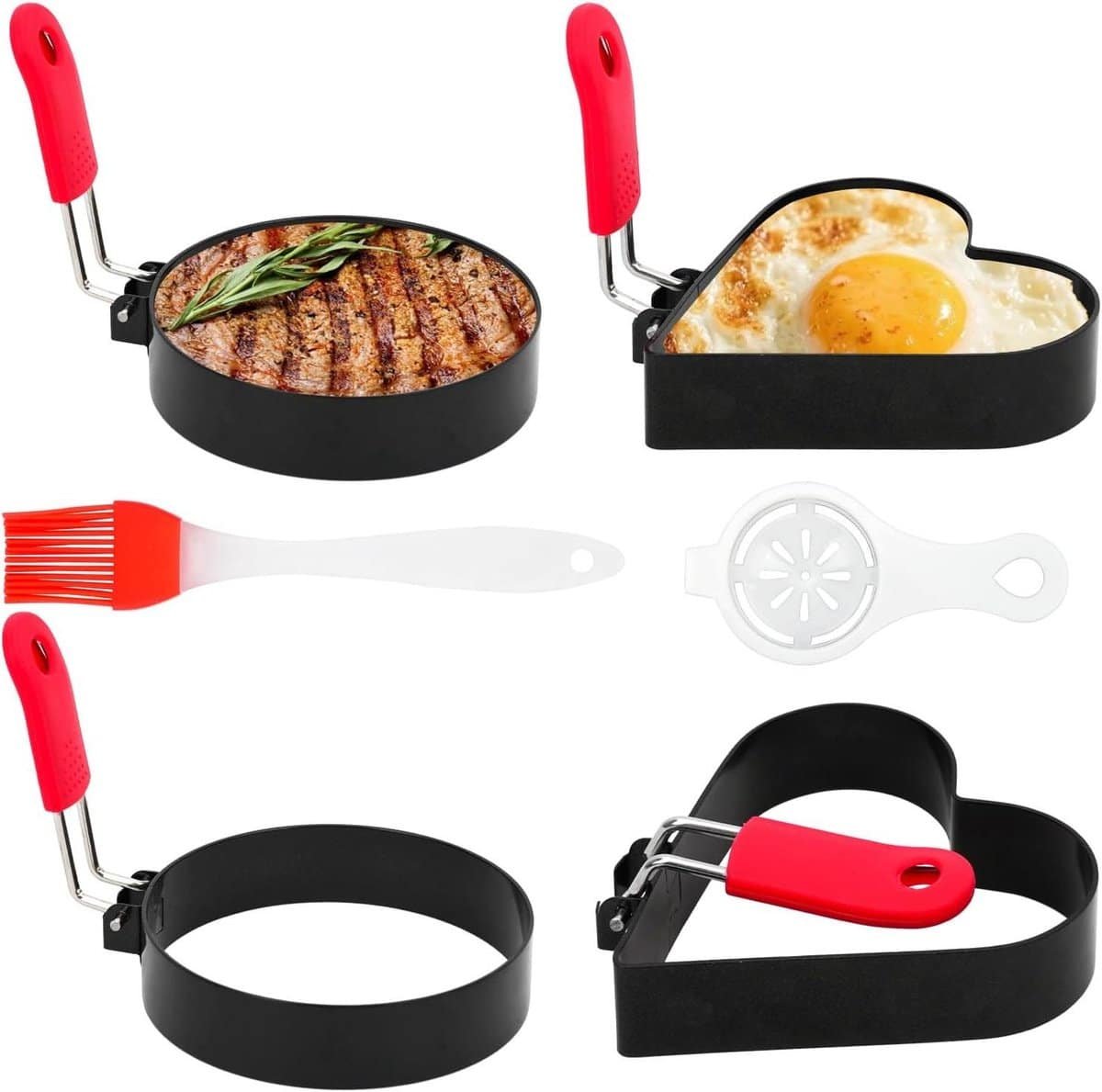 2 vormen beschikbaar: Kies uit ronde en hartvormige ontwerpen voor prachtig gevormde eieren. Deze eierringen verbeteren de kookervaring en zorgen voor een mooie presentatie.