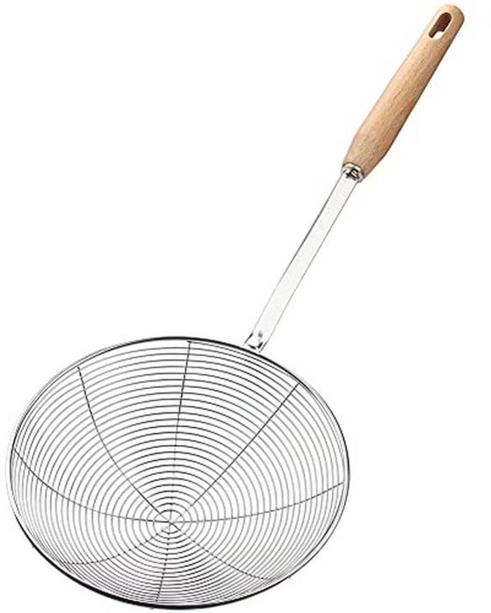 Deze multifunctionele spinnenzeef met een slank houten handvat is perfect voor het koken en frituren. Met een diameter van 18 cm en een stevige roestvrijstalen constructie is deze skimmerlepel ideaal voor het verwijderen van voedsel uit olie of bouillon. Het grote zeefontwerp zorgt ervoor dat vet en andere ongewenste stoffen effectief worden afgevoerd, terwijl je voedsel optimaal wordt geneutraliseerd. Een must-have keukengereedschap voor elke kookliefhebber.