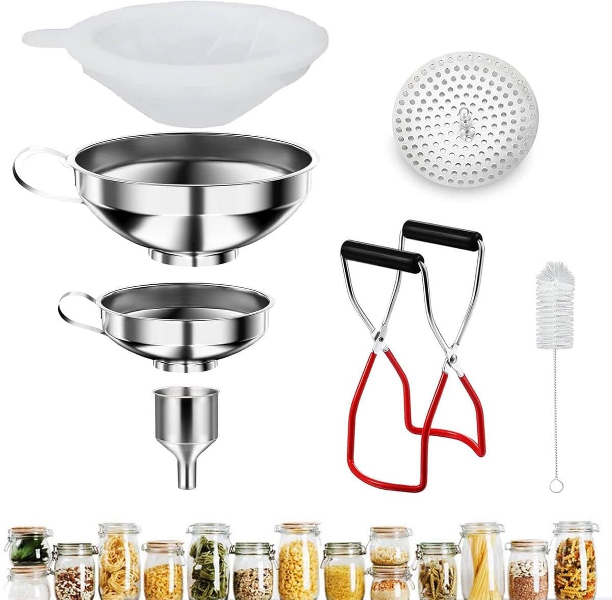 Trechter Set van Roestvrij Staal met Inmaakpotjeslifter en Filter – 7-delig Keuken Accessoire