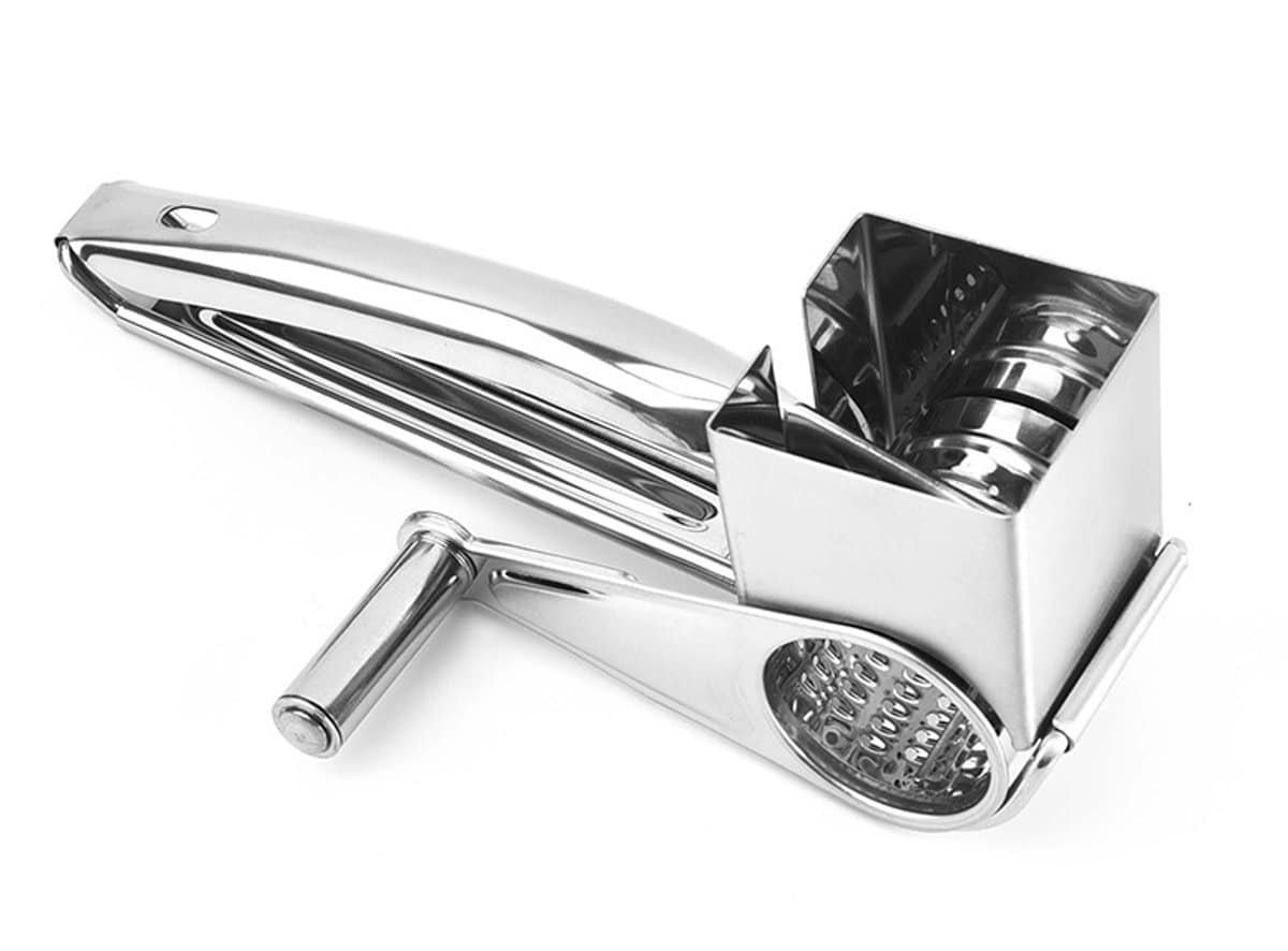 Hoogwaardig materiaal: Onze roterende kaasrasp is gemaakt van roestvrij staal voor een uitstekende duurzaamheid en betrouwbaarheid. Geniet jarenlang van de perfecte raspwerking.