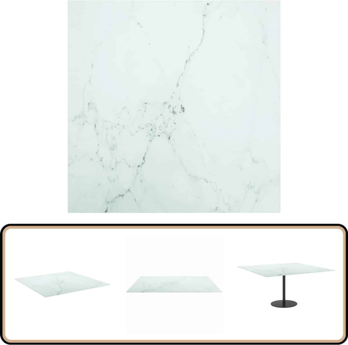 vidaXL Tafelblad 80×80 cm Wit Marmeren Design Tafelblad – Marmeren Design – Gehard Glas – Wit Tafelblad – Keuken Accessoires