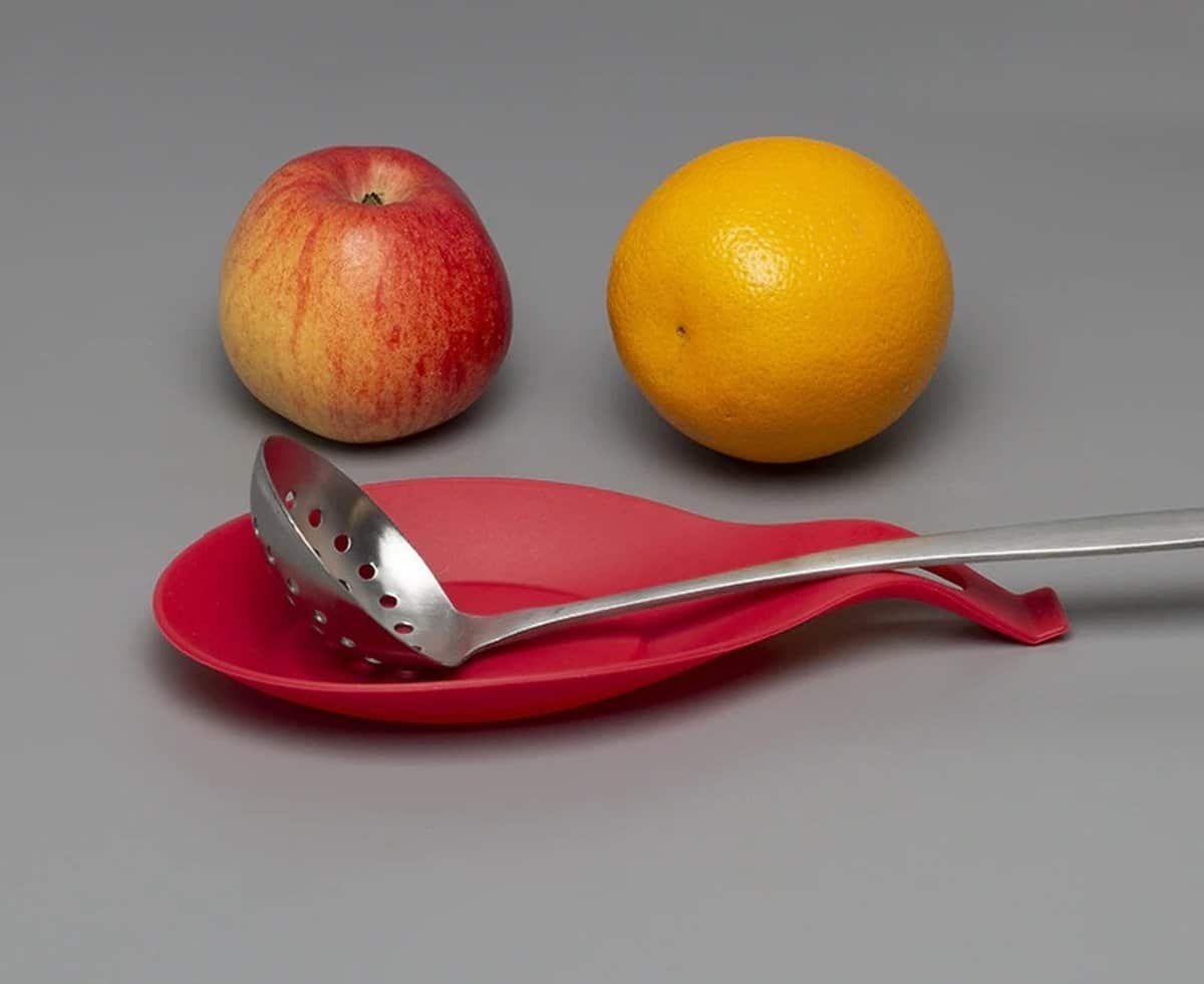 De siliconen lepelhouder heeft een mooi amandelvormig design, het verlengpunt en de bodem zijn uitgebalanceerd om een stabiele steun te vormen. De gebogen handgreep met haak is comfortabel en praktisch.