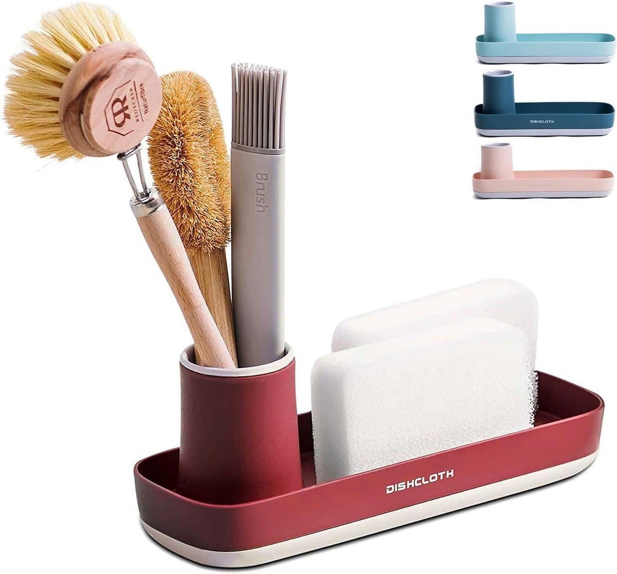 Wastafel Organizer voor Spoelbak – Keuken Accessoire voor Sponzen, Zeep en Afwasborstel – Rood