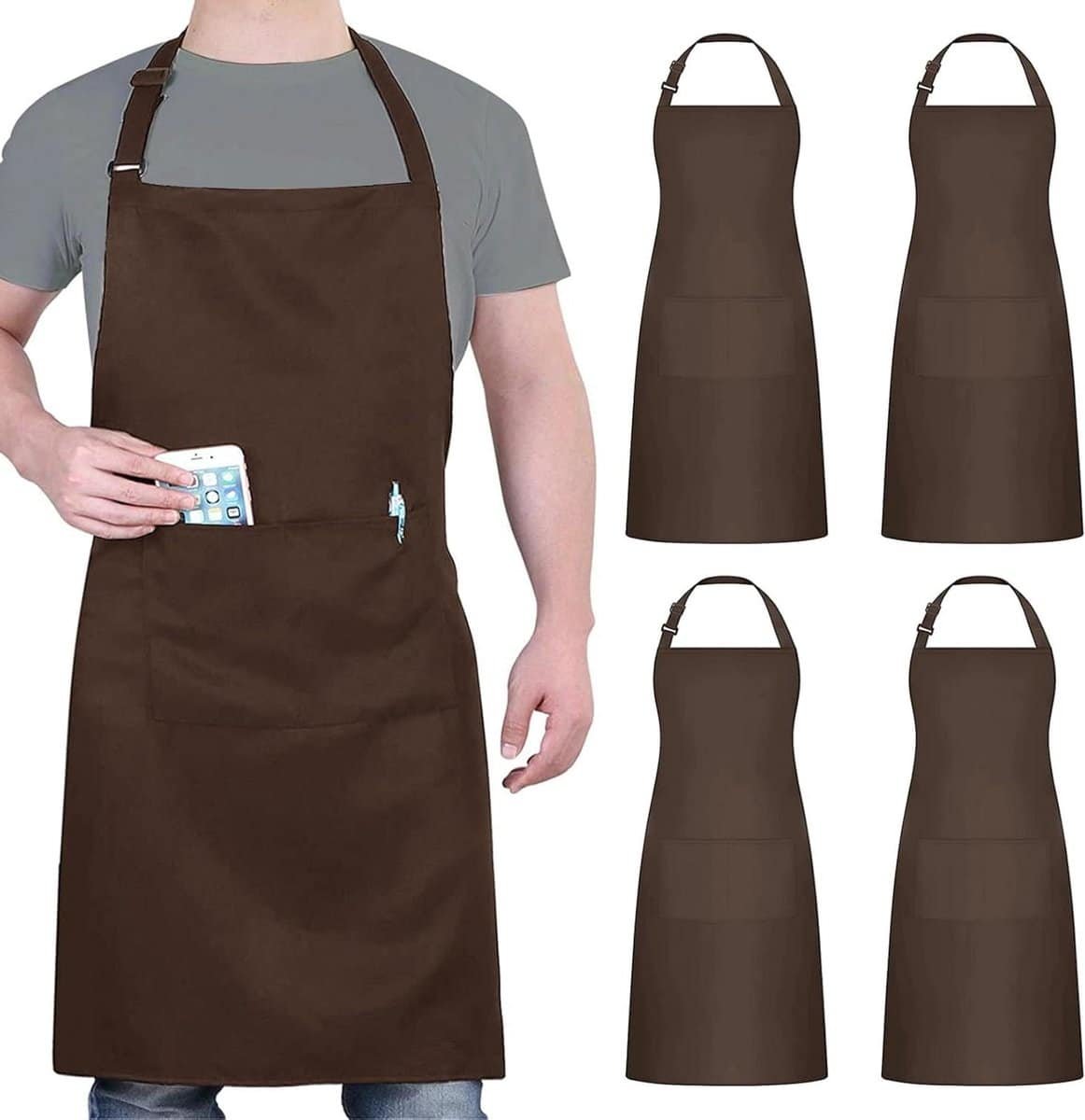 Kies voor ultieme bescherming tijdens het koken met deze set van vier waterdichte kookschorten. Voorkom vervelende vlekken en spatten op uw kleding, zodat u zich volledig kunt concentreren op uw culinaire creaties. Deze schorten zijn een must-have voor elke keukenprins of -prinses die waarde hecht aan zowel functionaliteit als een schone uitstraling. Deze veelzijdige schorten zijn ideaal voor diverse toepassingen, van bakken en koken in de keuken tot tuinieren of werken in een restaurant. Dankzij het verstelbare nekband en de extra lange rugband (75 cm) passen ze comfortabel bij iedereen, ongeacht postuur. Het knielange ontwerp biedt een uitstekende dekking, waardoor uw kleding optimaal beschermd blijft tegen allerlei soorten vuil en vloeistoffen. De schorten zijn vervaardigd uit hoogwaardig, waterdicht polyester, wat zorgt voor duurzaamheid en eenvoudig onderhoud. Geniet van een zorgeloze kookervaring en behoud uw kleding in perfecte staat. Bestel vandaag nog deze praktische set en til uw kook- en bakavonturen naar een hoger niveau!